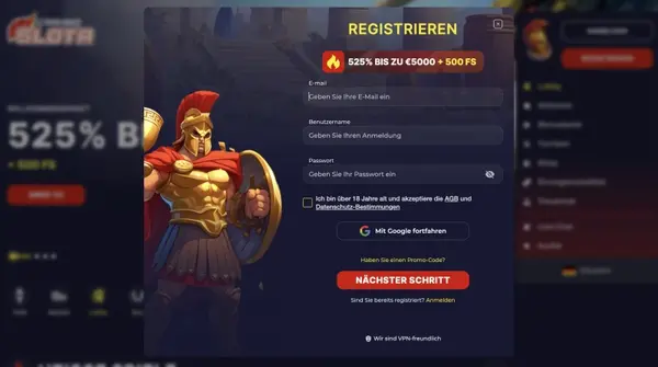 Die Registrierung ist auf Schnelligkeit ausgelegt, benötigt aber dennoch korrekte Angaben, damit Auszahlungen reibungslos freigegeben werden können. Öffne zum Start die Startseite und wähle den Registrierungsbutton. Danach legst du deine Login-Daten fest und bestätigst die Basics. Wenn du bereits ein Konto hast, nutze den Slota Login im oberen Menü, um zu deinem Guthaben und den zuletzt gespielten Titeln zurückzukehren.